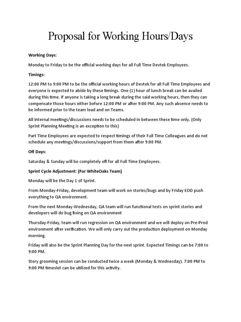 Proposed Work Schedule for Devtek Employees | PDF | Business