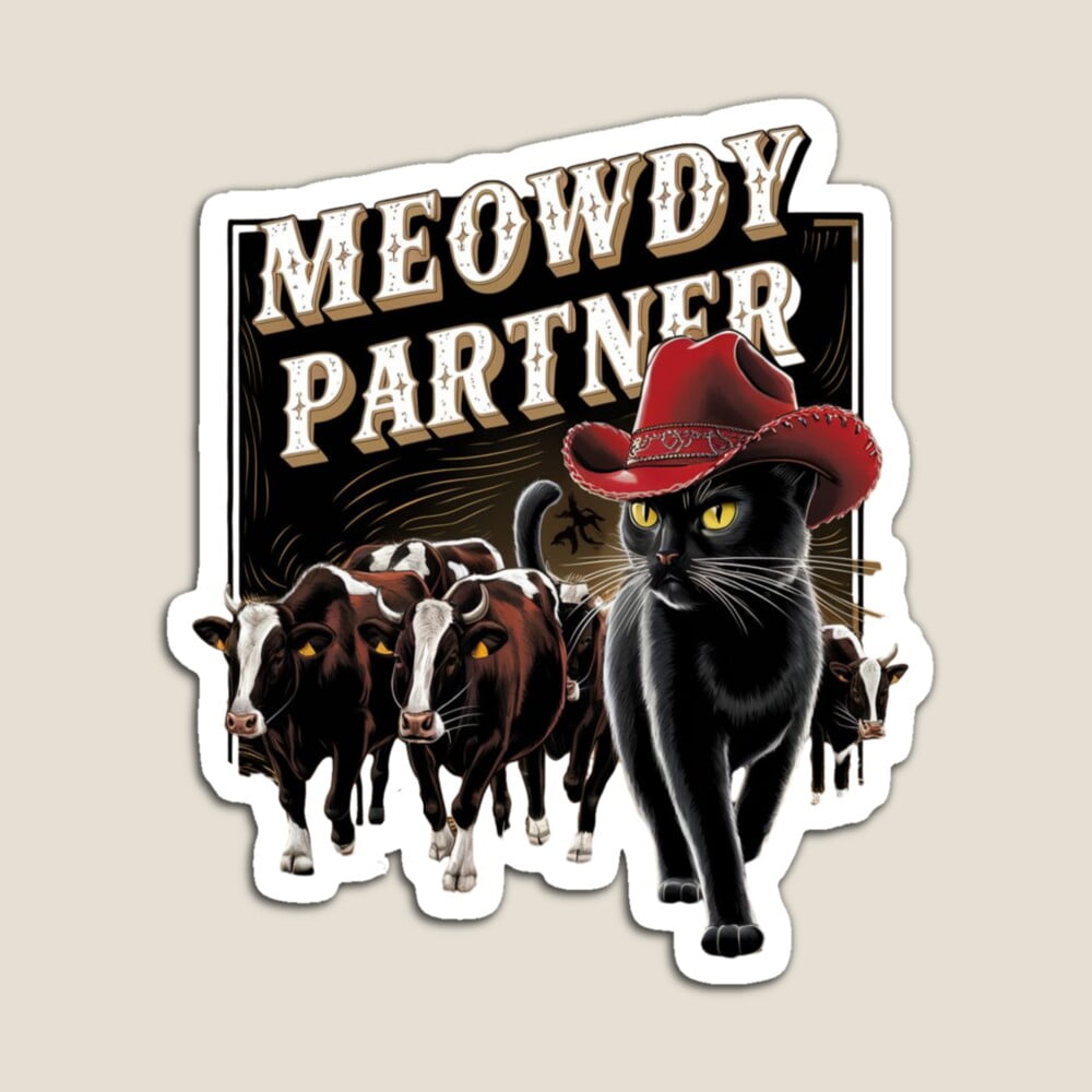 Cat: Meowdy Partner Sticker, Funny Cowboy Cat Sticker, Cute Kitten ...