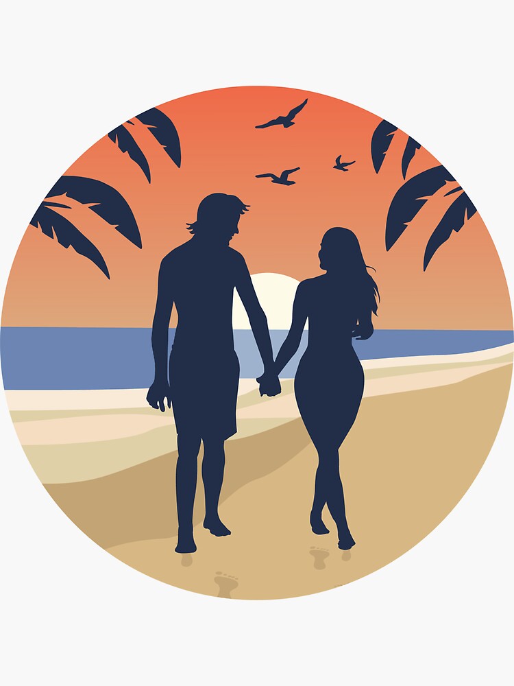 "Beach Couple, Loved Beach, Sunset Partner" Sticker by TpproShop ...