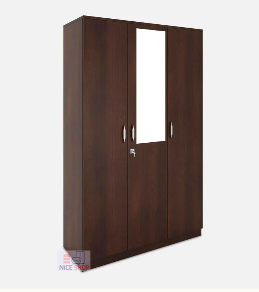 Chocolate Color Partex MDF Laminated Board 3 Doors Almirah with mirror ...