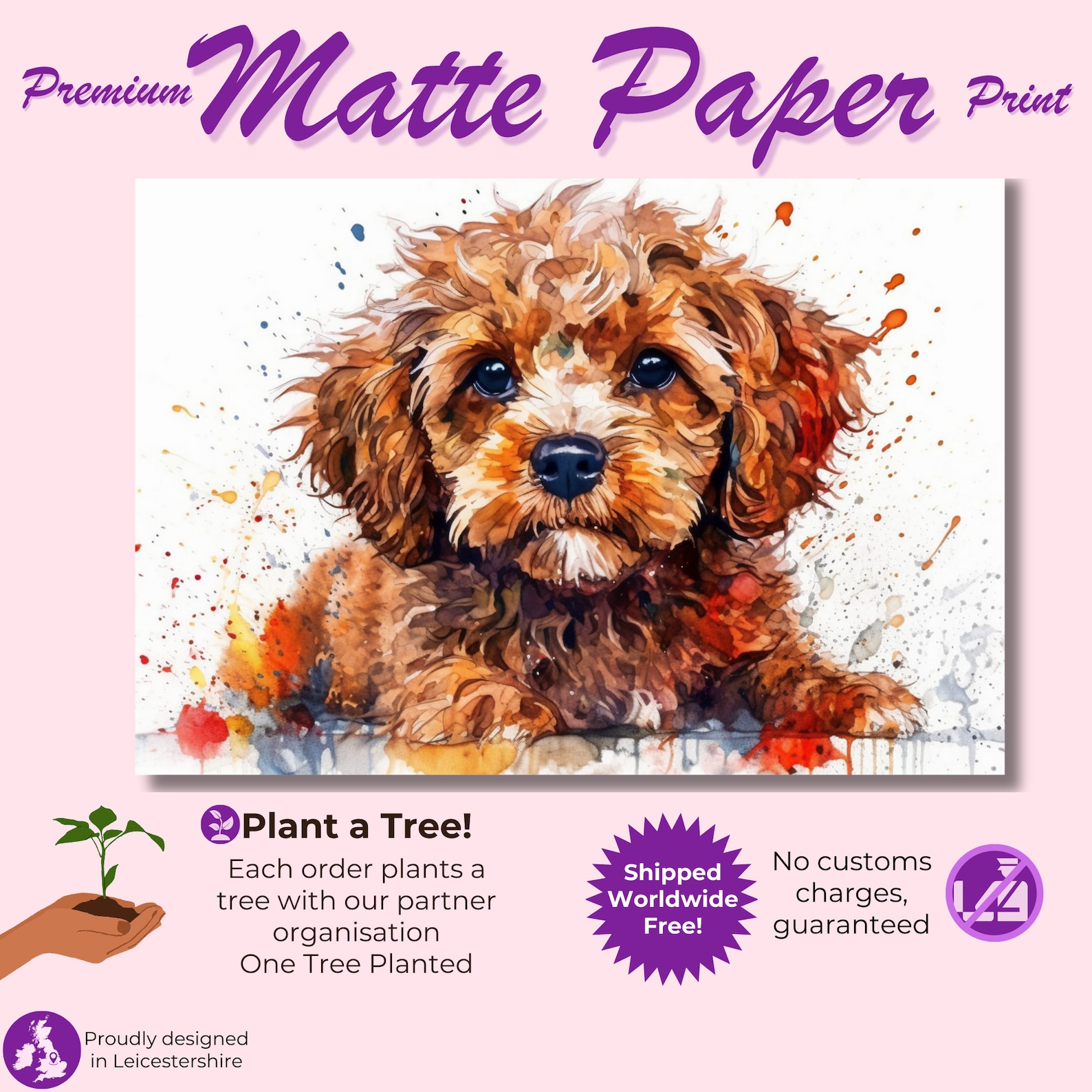 Watercolour Cavapoo Paint Splash Poster Print. Unframed Abstract ...