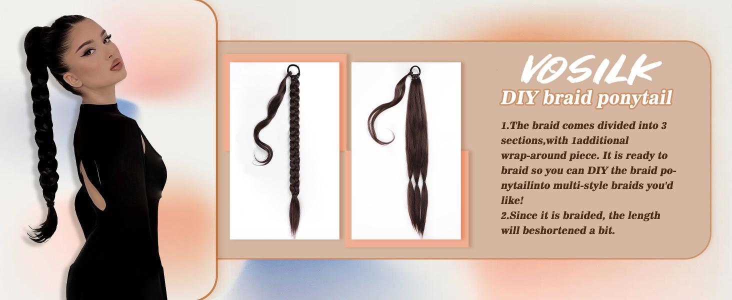 32 inch Braid Ponytail Extension Long Braid Hair Extension with Hair ...