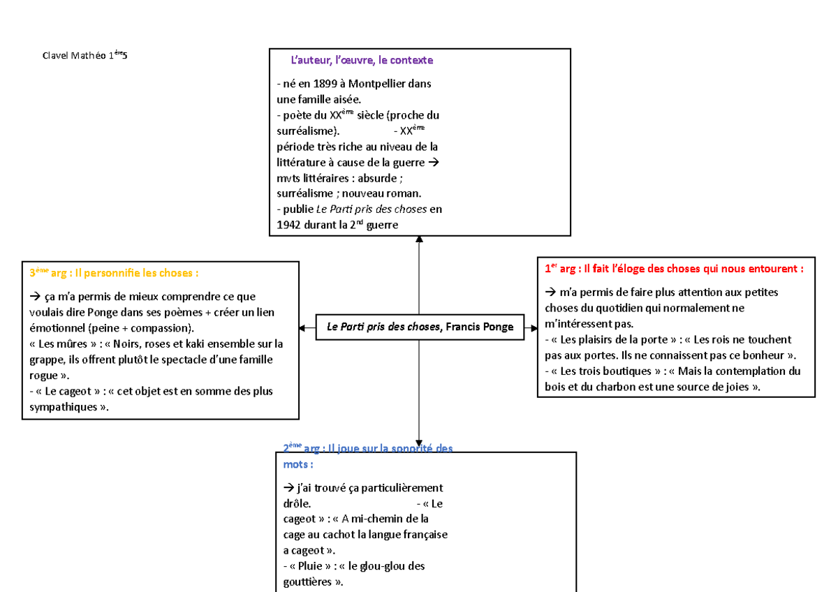 Le Parti pris des choses carte mentale - Clavel Mathéo 1ère 5 1 er arg ...