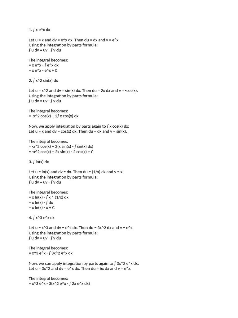 SOLUTION: Integration by Parts Formulas Notes and Examples Paper ...
