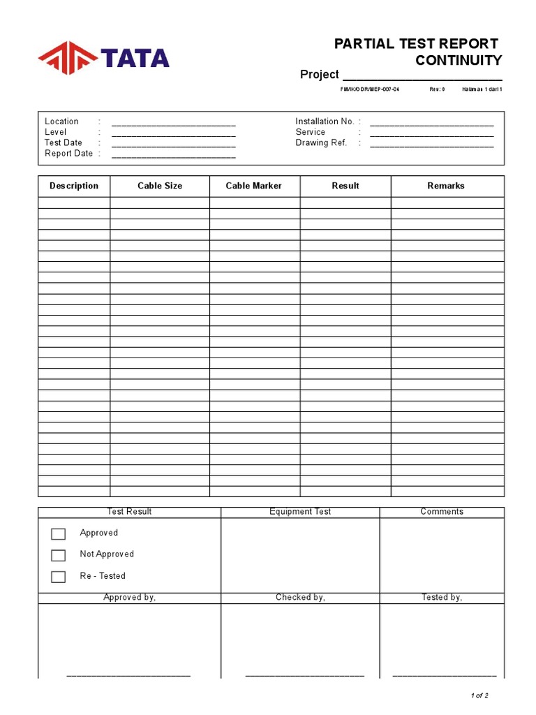 Partial Test Report Continuity: Project | PDF