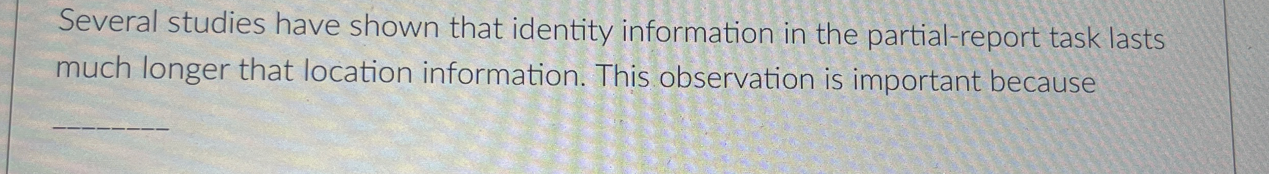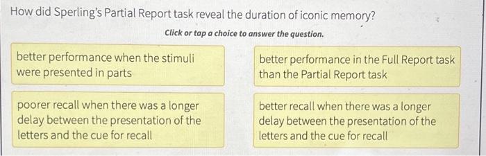 Solved How did Sperling's Partial Report task reveal the | Chegg.com