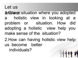 HOLISTIC AND PARTIAL.pptx Distinguishing a Holistic Perspective from a ...