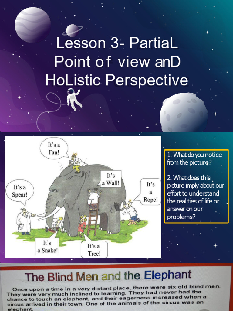 Lesson 3 - Holistic and Partial Perspectives - For Hand Outs | PDF ...