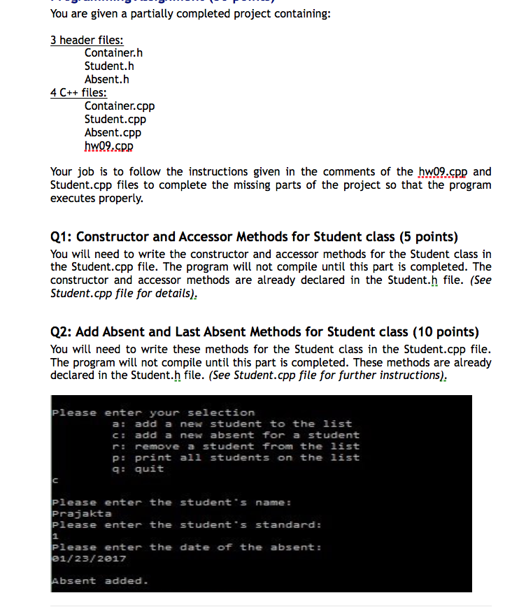 You are given a partially completed project | Chegg.com