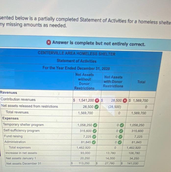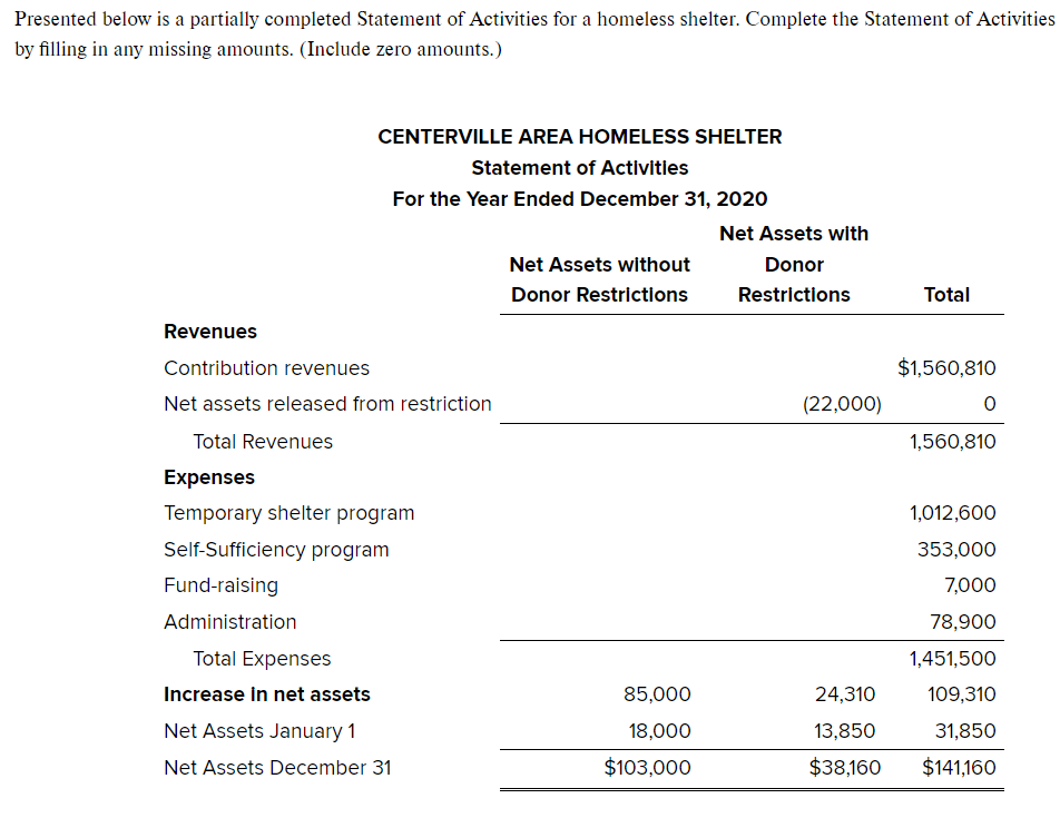 Answered: Presented below is a partially completed Statement of ...