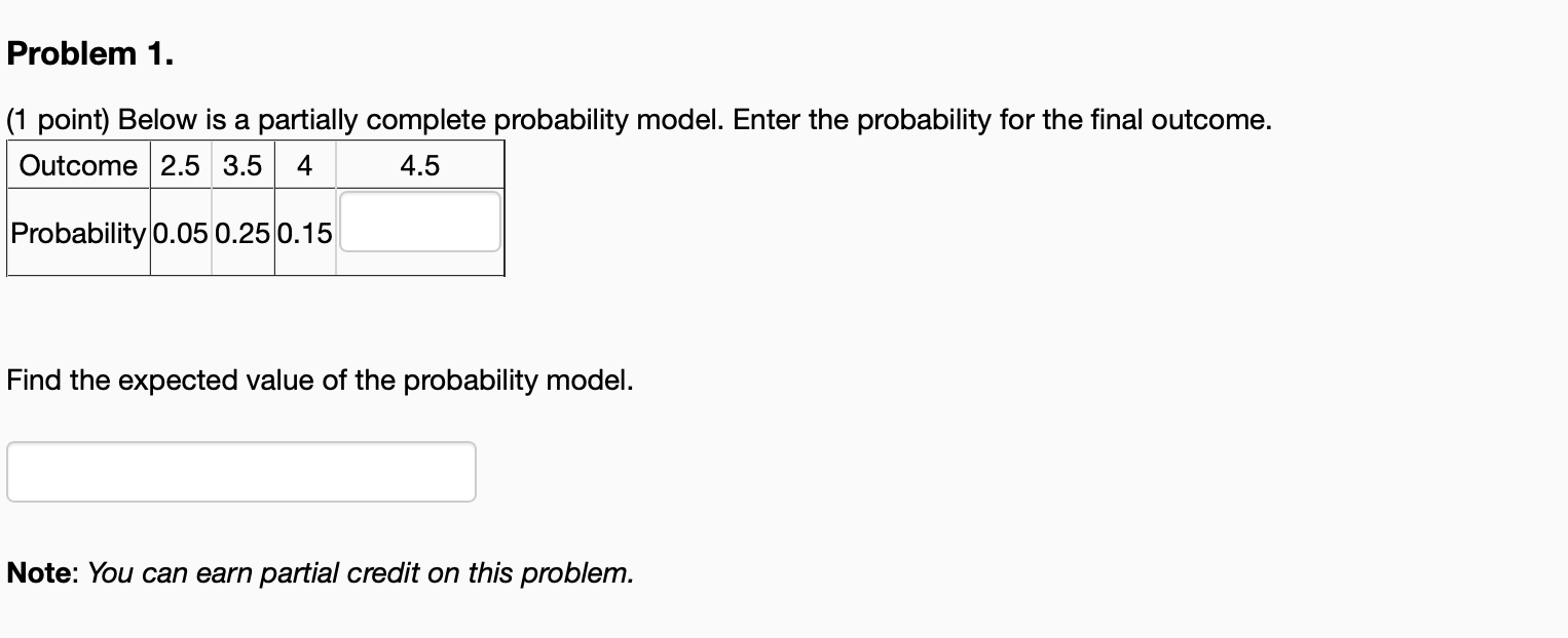 Solved Problem 1. (1 point) Below is a partially complete | Chegg.com