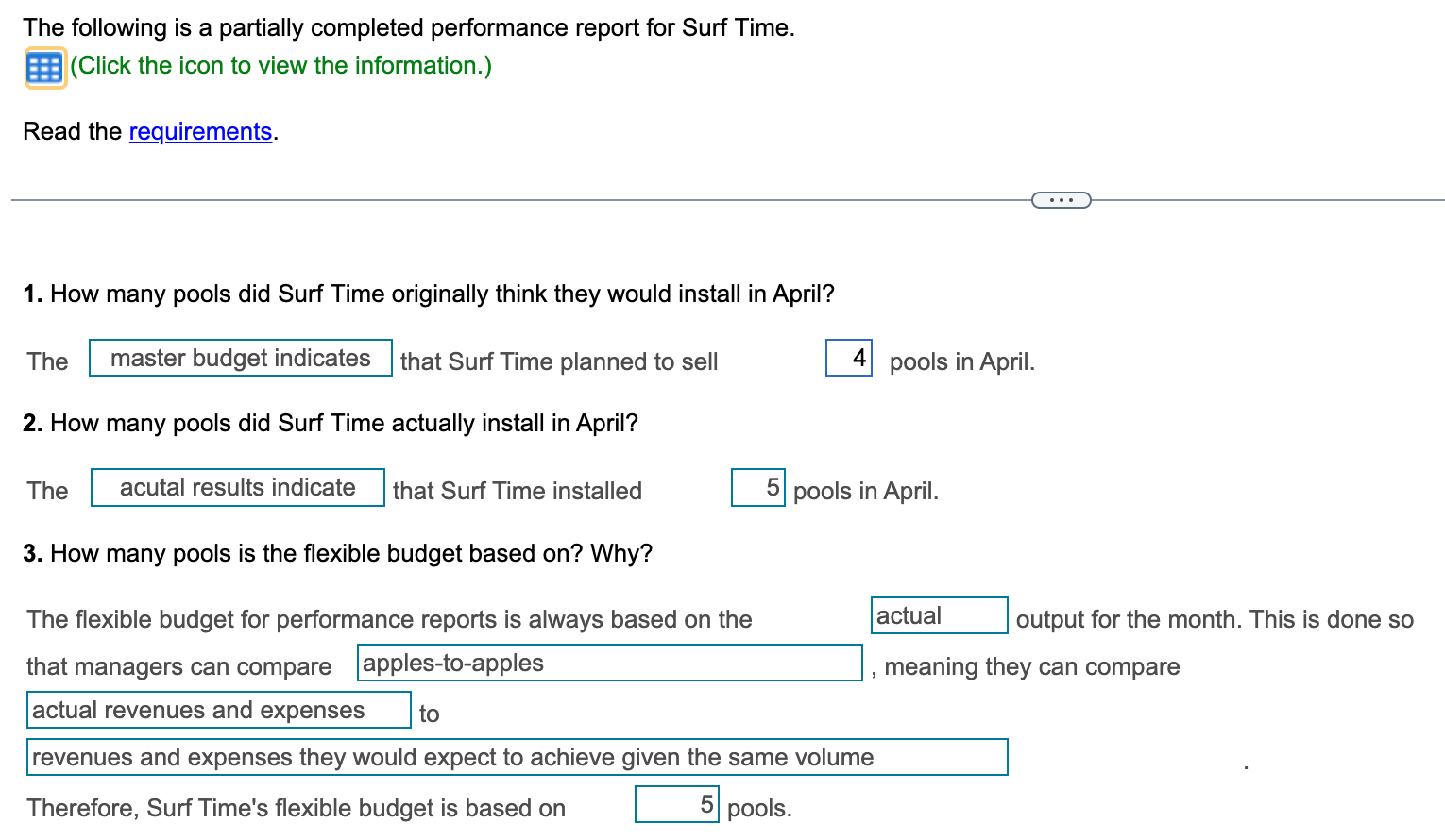 Solved Answer the questions based on the partially completed | Chegg.com