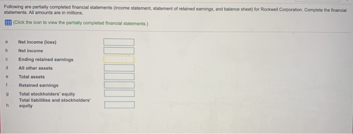 Solved Following are partially completed fnancial statements | Chegg.com