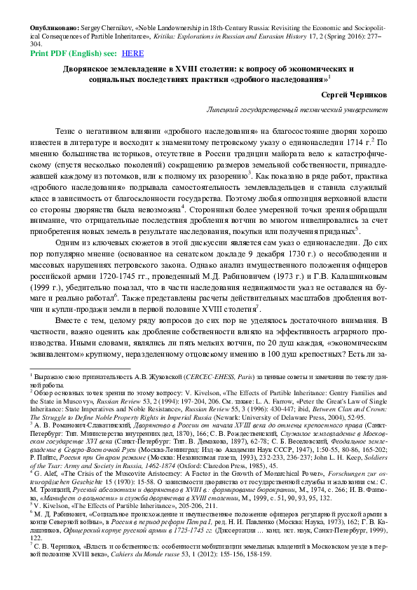 (PDF) Noble Landownership in 18th-Century Russia: Revisiting the ...
