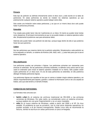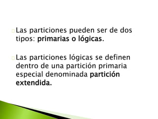 Particiones (Partición Extendida (Para eliminar la limitación de cuatro…