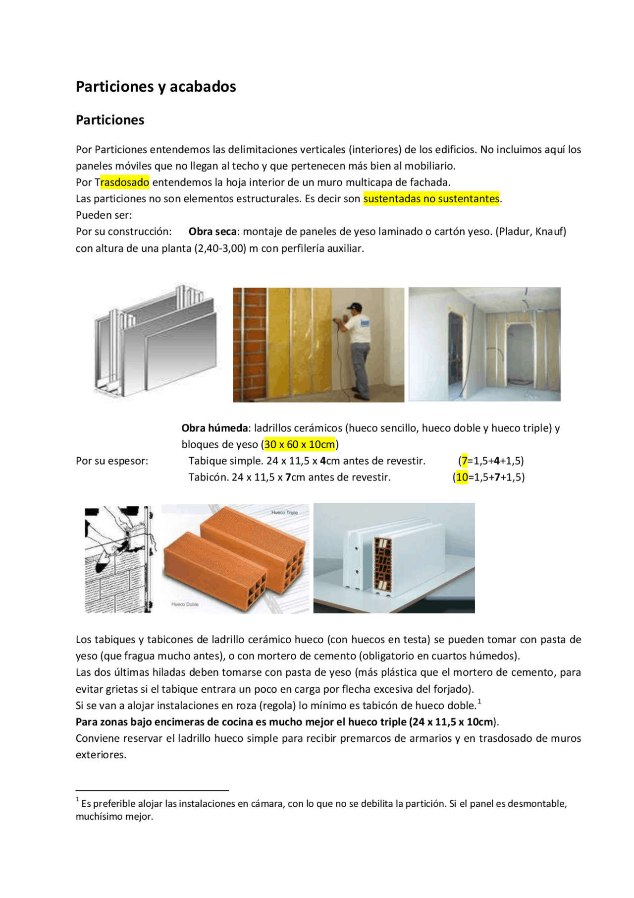 Particiones interiores 3 - Construccion IV - Apuntes - Docsity