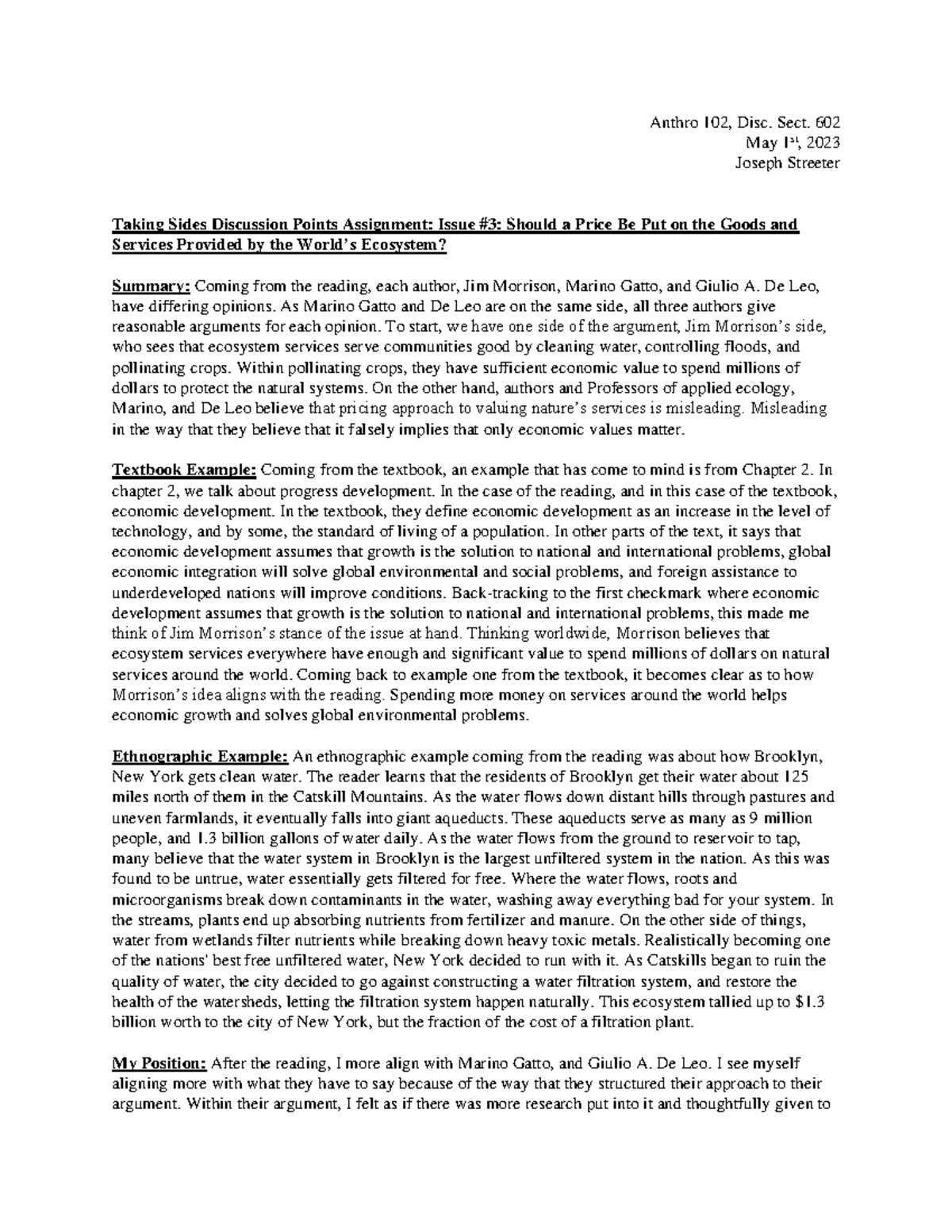 Discussion Participation Notes 4 - Anthro 102, Disc. Sect. 602 May 1st ...