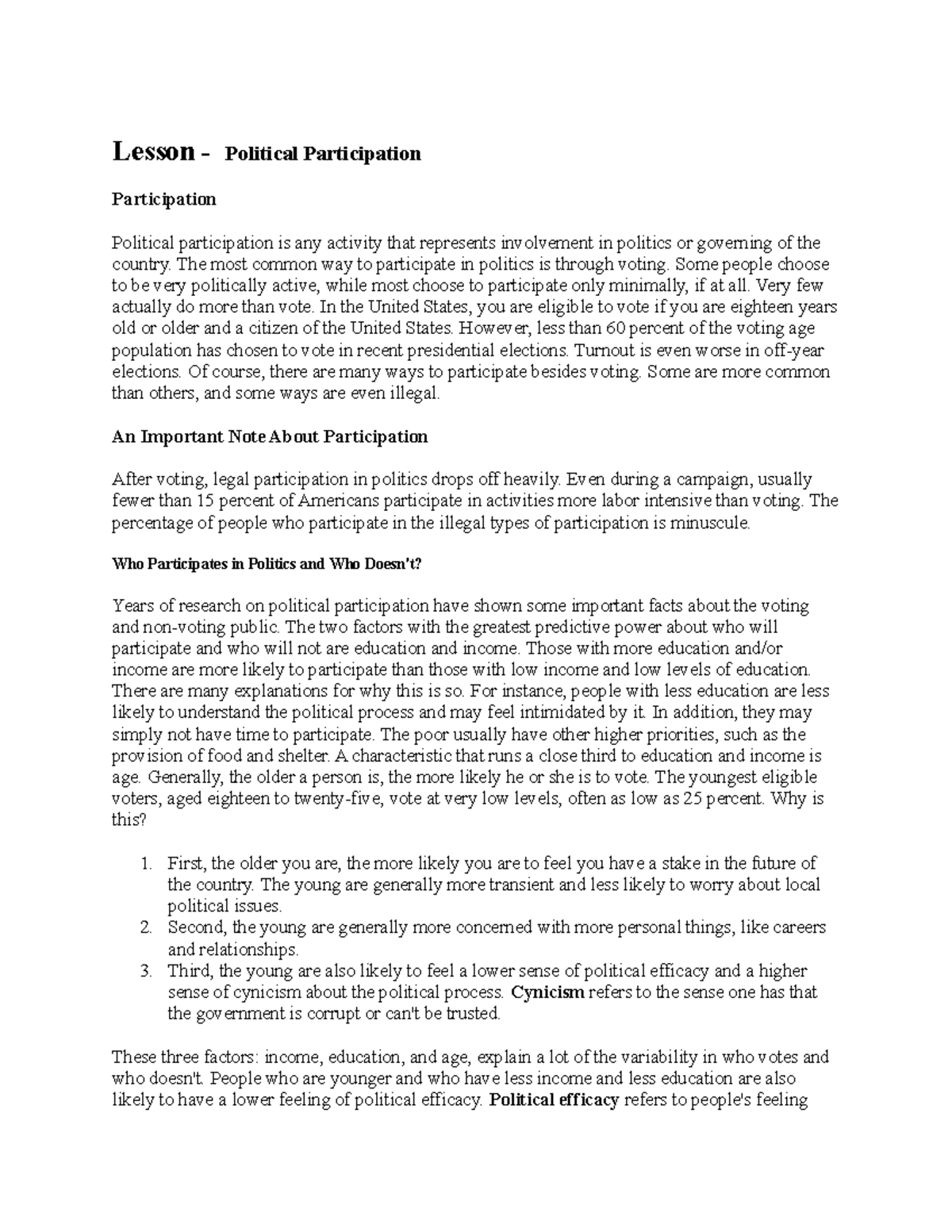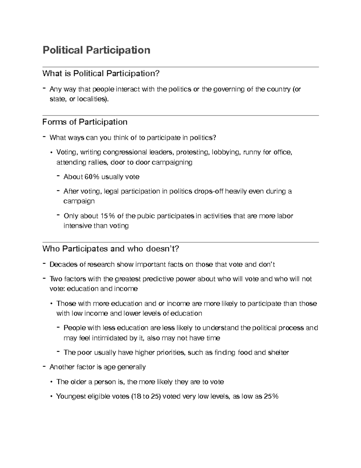 Political Participation Notes | POSC 3315 - Political Participation ...