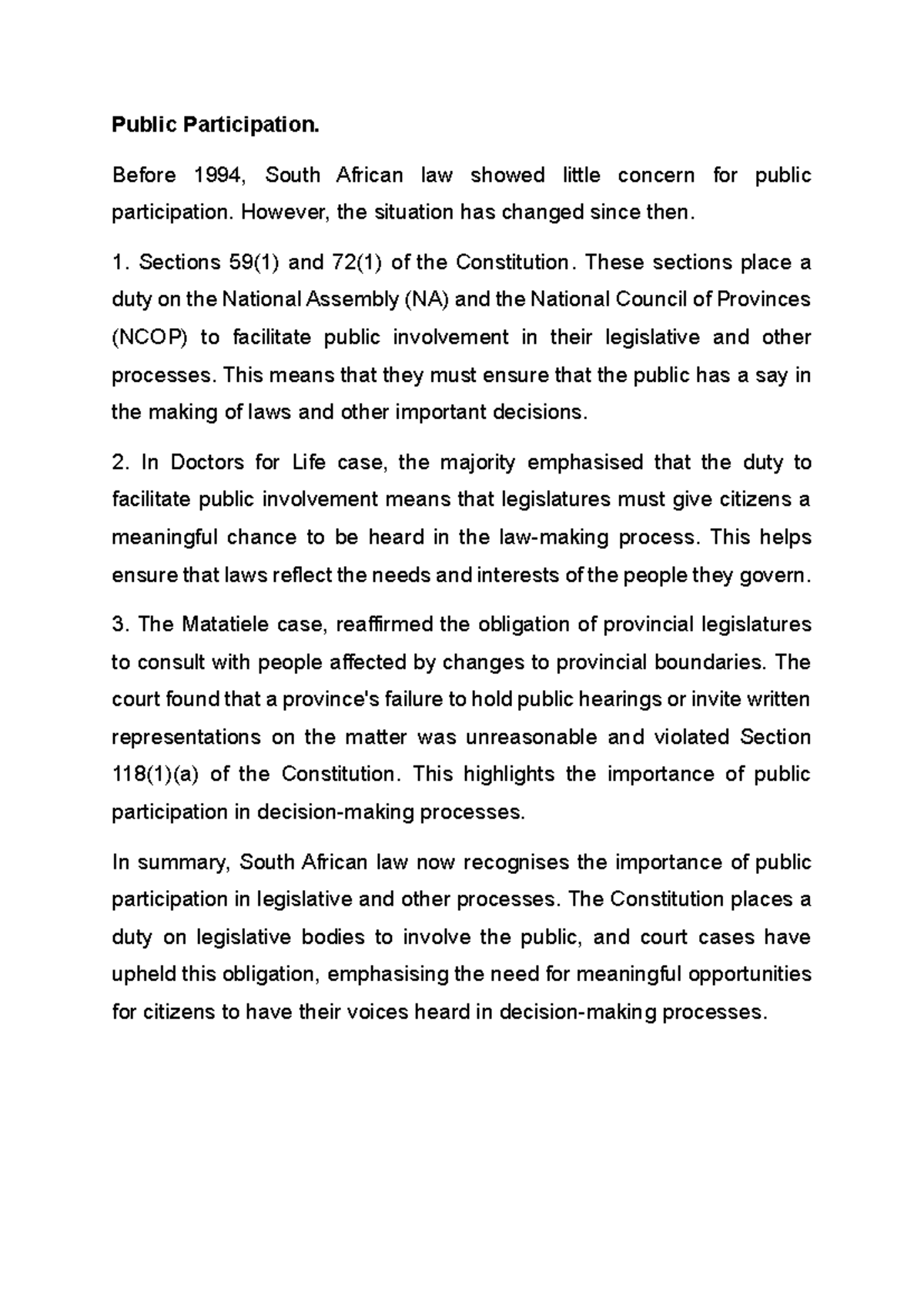 Public Participation Notes - Public Participation. Before 1994, South ...