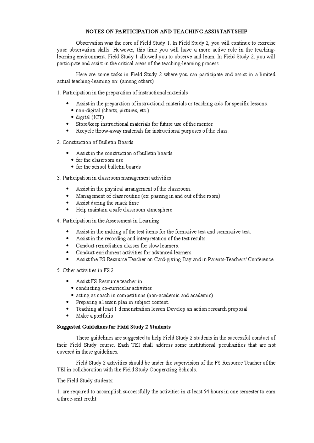 Notes ON Participation AND Teaching Assistantship - NOTES ON ...
