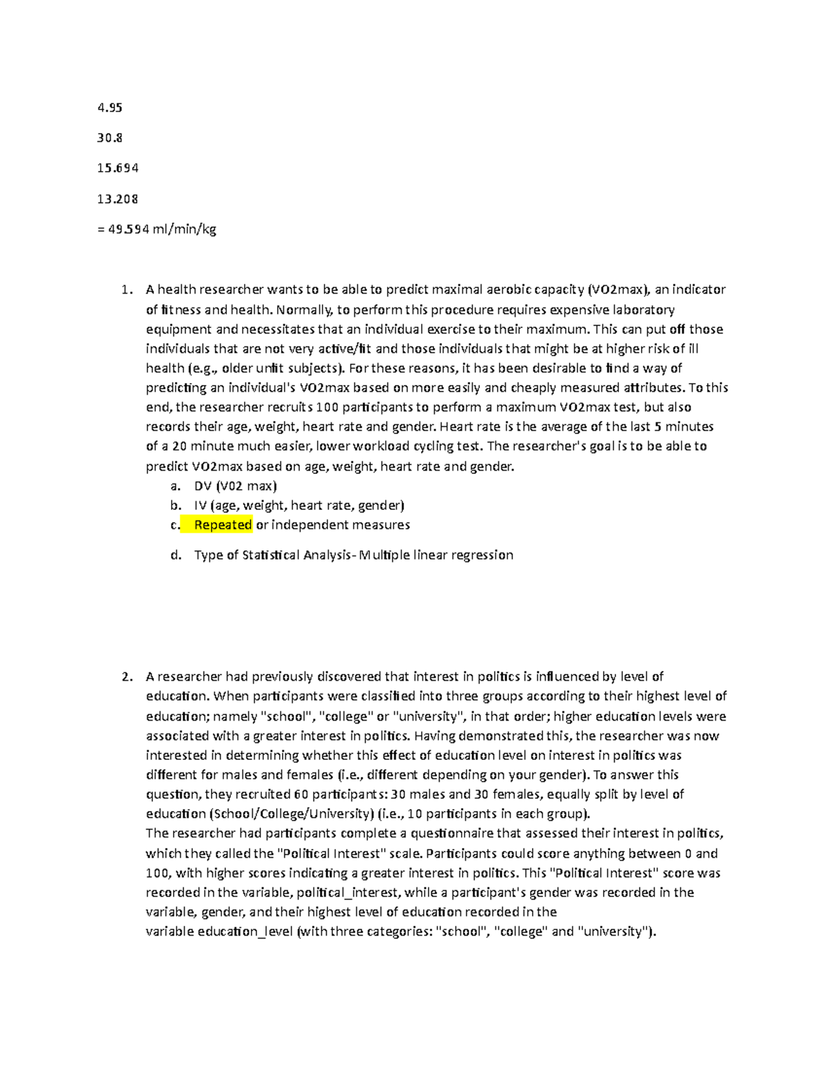 participation notes - 4. 30. 15. 13. = 49 ml/min/kg A health researcher ...