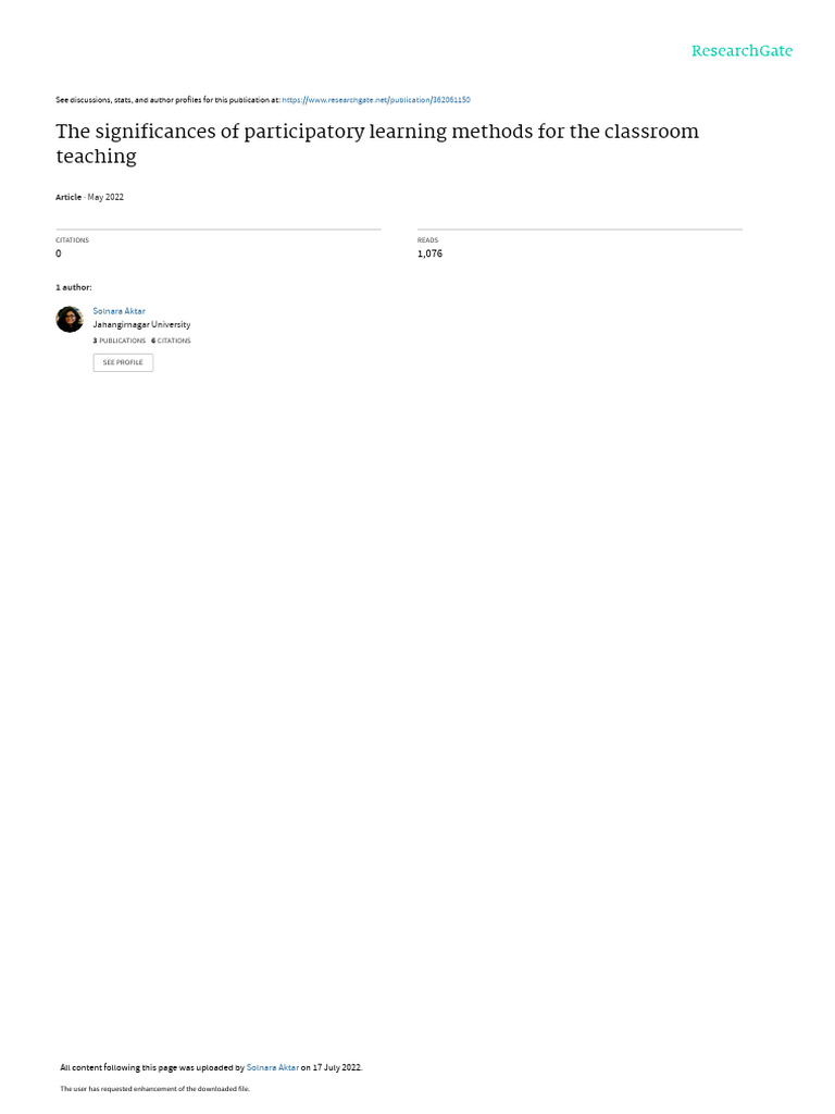 The Significance S of Participatory Learning Methods For The Classroom ...