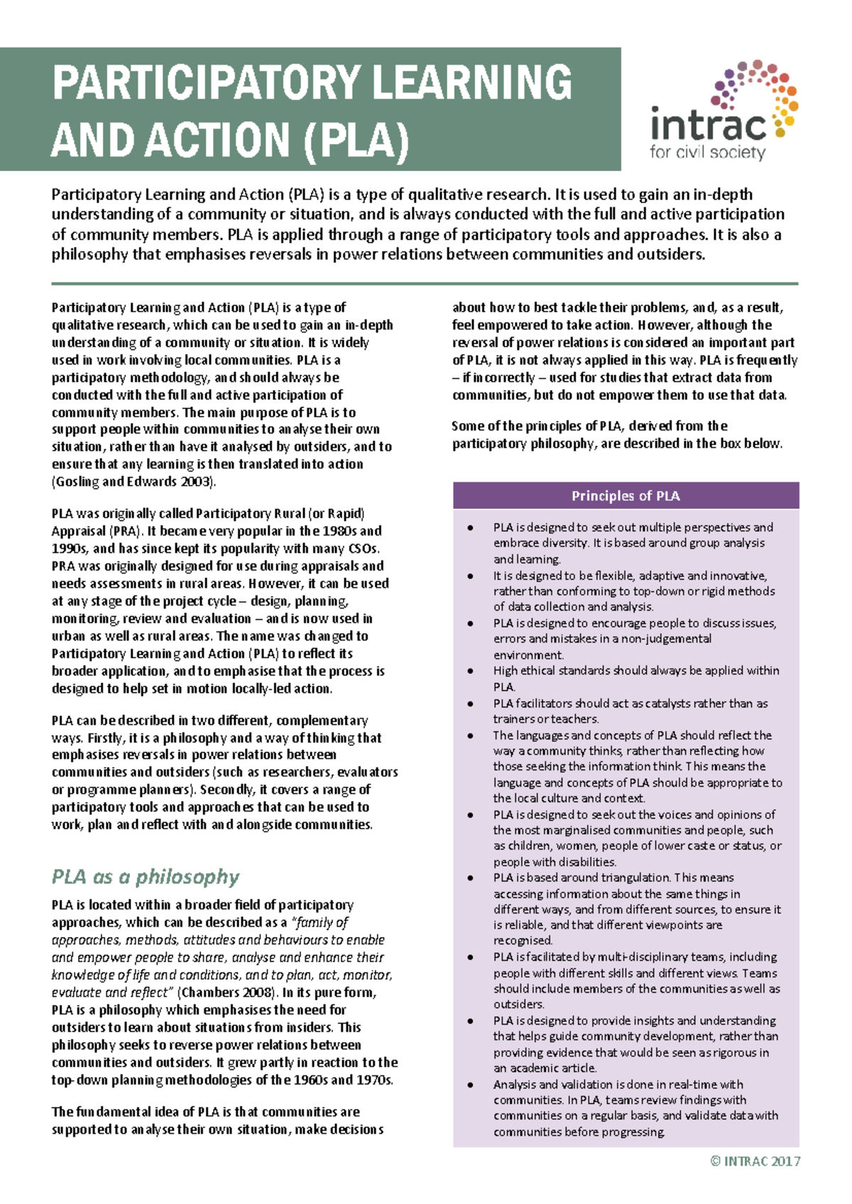 What Is Participatory Learning and Action (PLA) - An Introduction | PDF ...