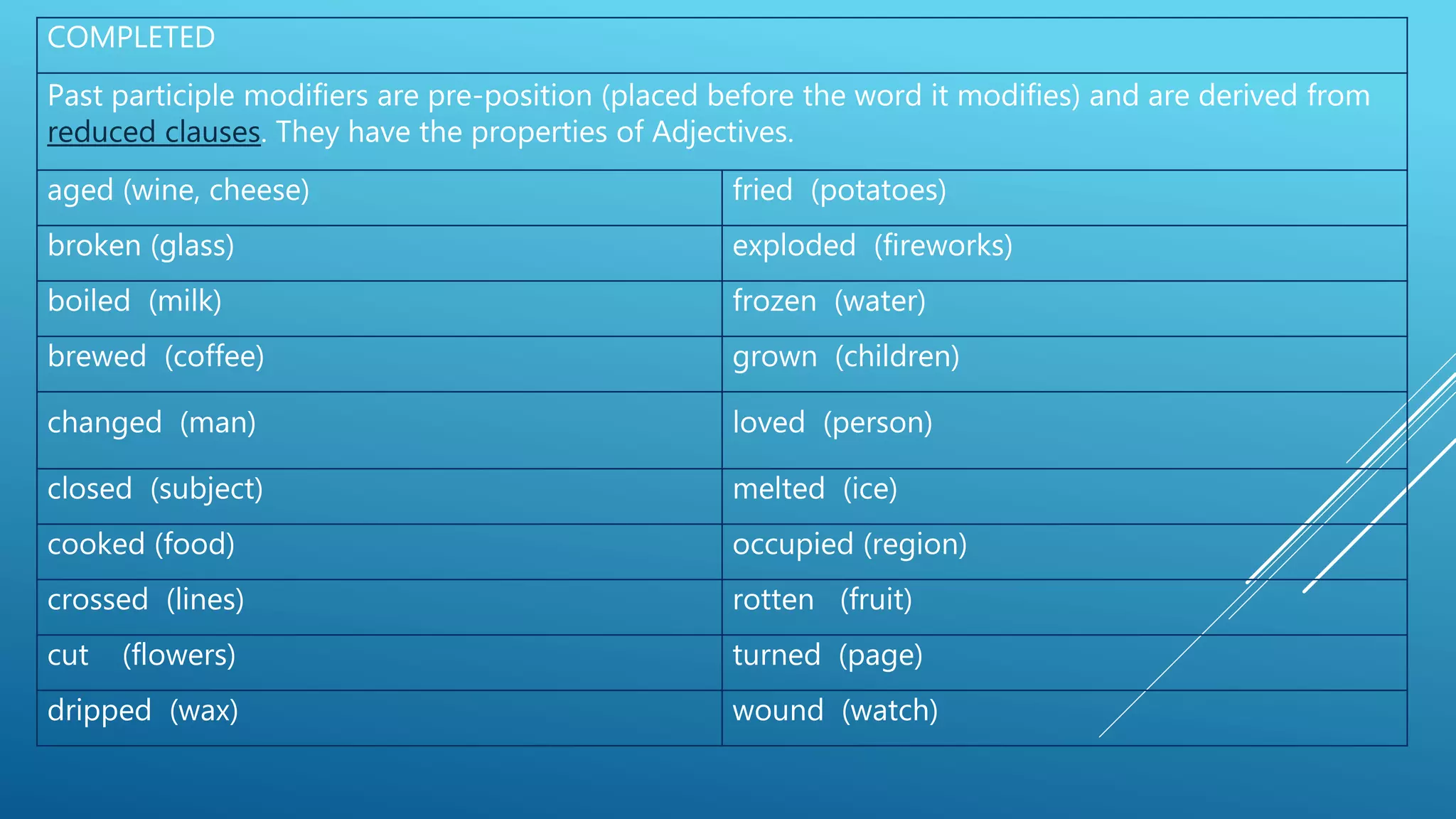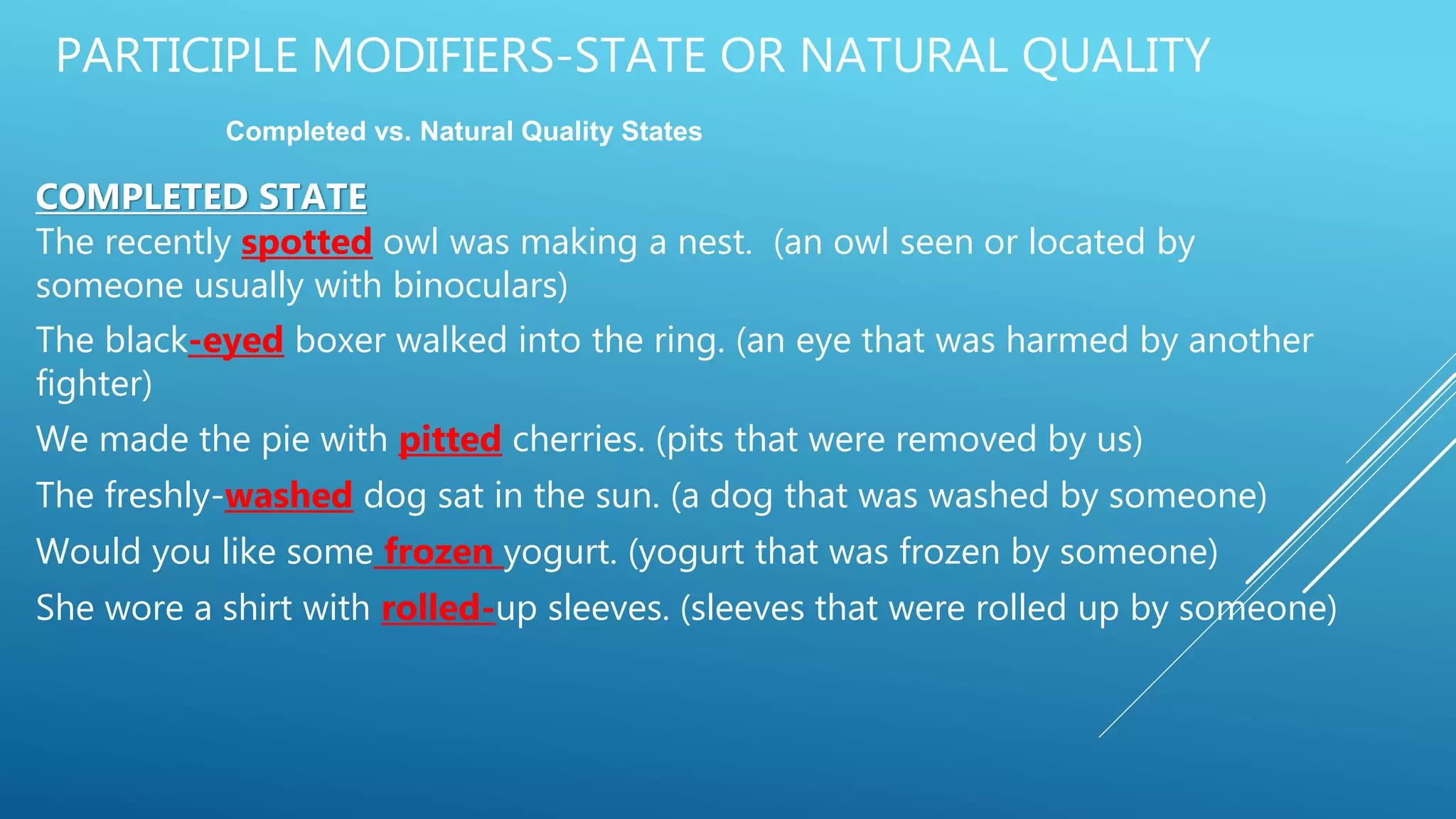 Participle as Modifier 5 | Modifier | Participle | Verbal | Non-finite ...