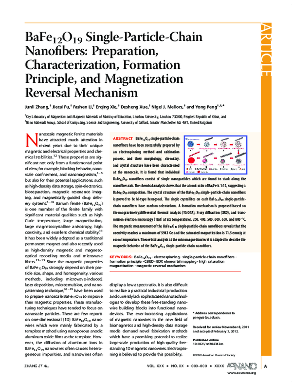 (PDF) BaFe12O19 single-particle-chain nanofibers: Preparation ...