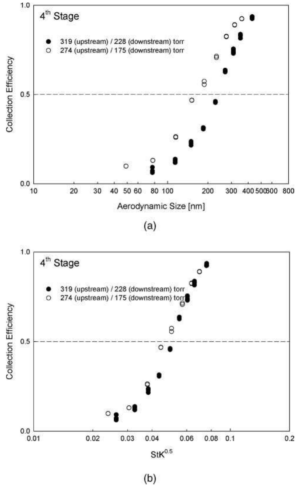 Particle collection efficiency curves for the 4th cyclone stage under ...