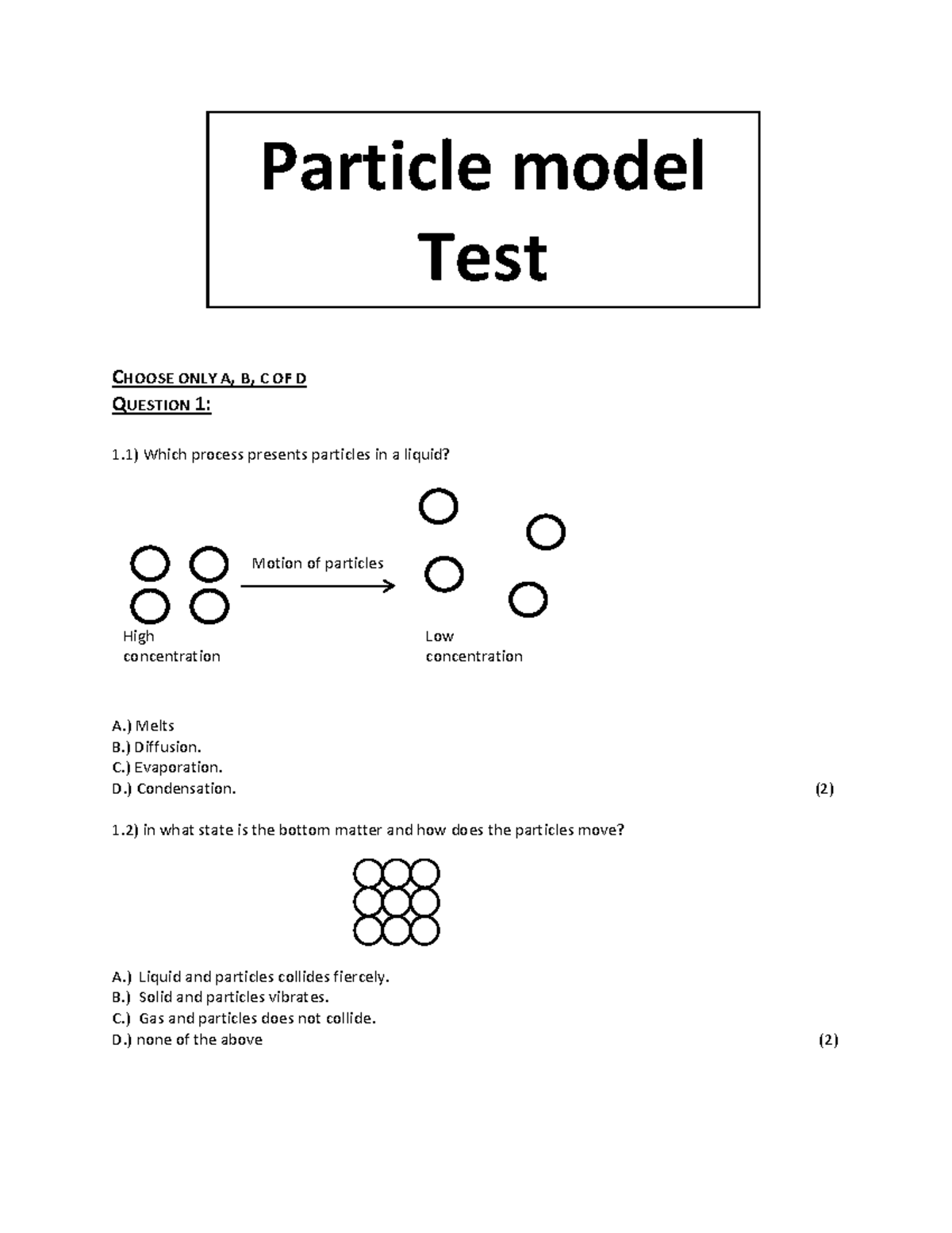 Particle Model Test: Understanding States of Matter and Density - Studocu