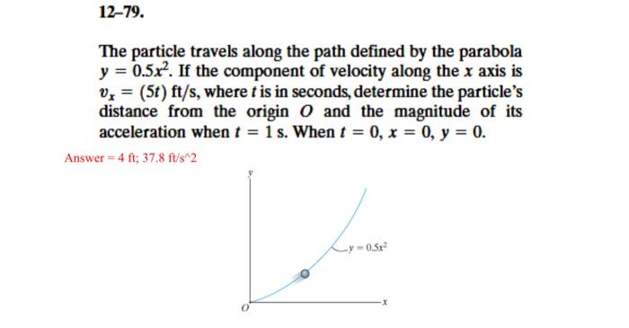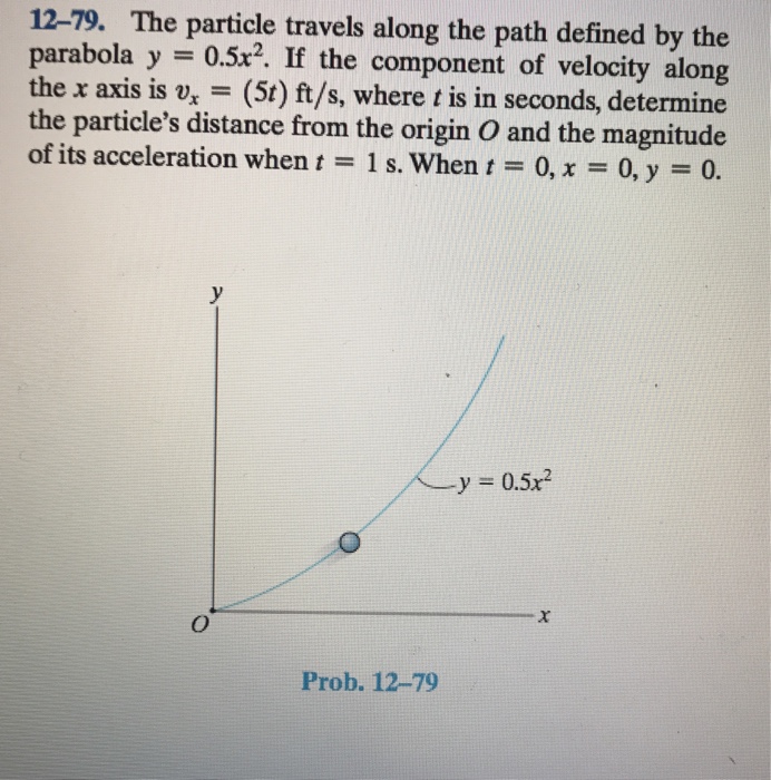 The particle travels along the path defined by the parabola y =0.5 \times..