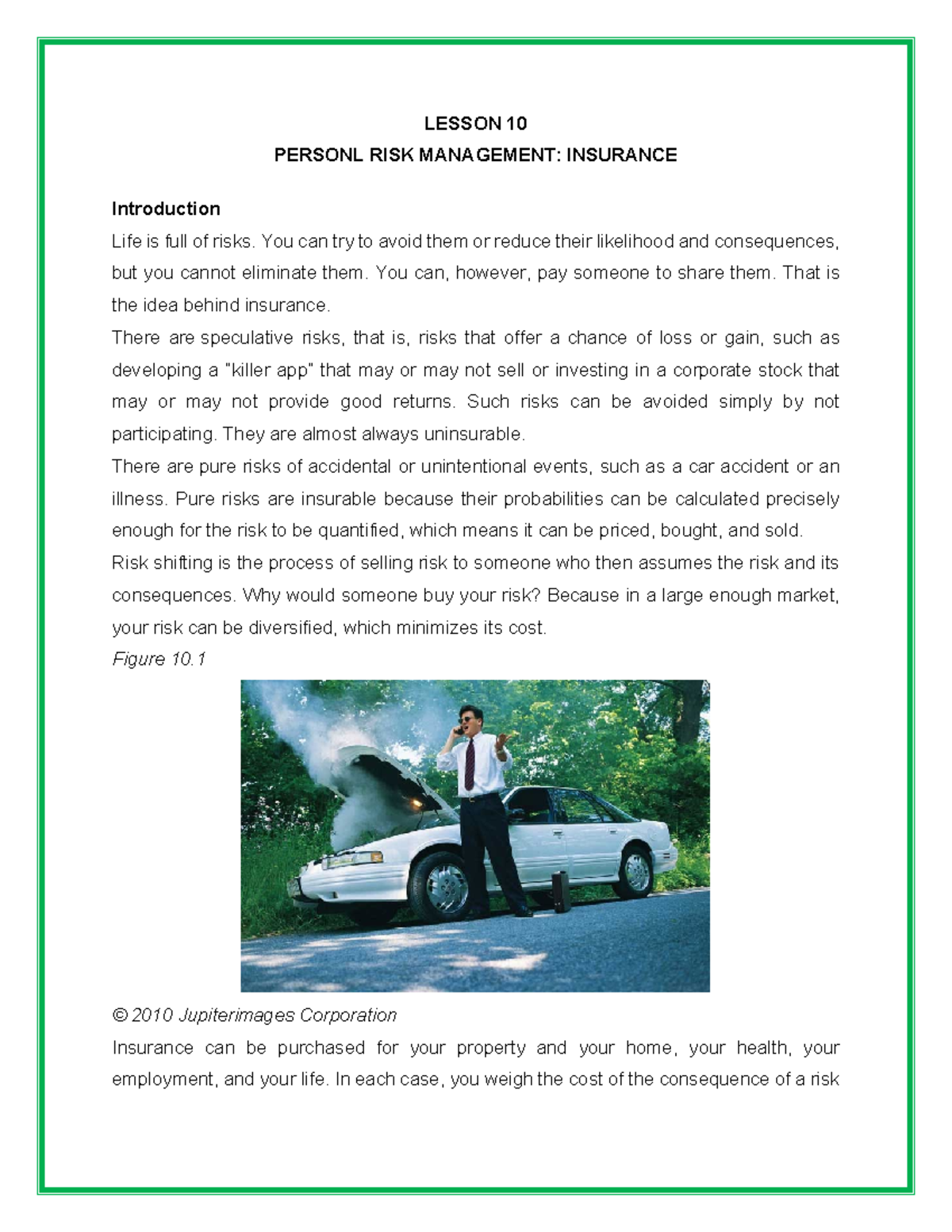 Lesson 10 Personal Risk Management - LESSON 10 PERSONL RISK MANAGEMENT ...