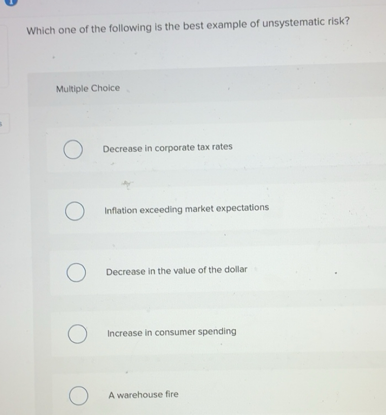 Solved: Which one of the following is the best example of unsystematic ...