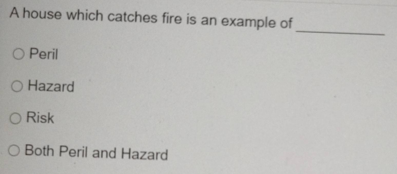 Solved: A house which catches fire is an example of _ Peril Hazard Risk ...