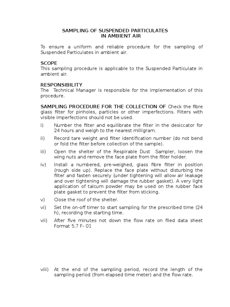 Suspended Particulate Matter (SPM) Method - Gravimetric (Using High ...