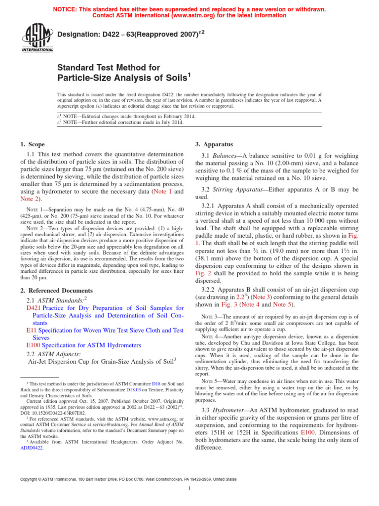 ASTM D422-63 (2007) E Standard Test Method For Particle-Size Analysis ...