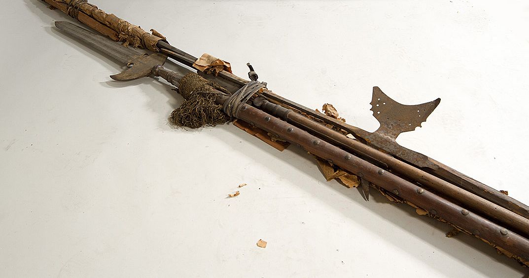 Bündel von einer Helmbarte (Hellebarde), drei Spießen, einer Partisane ...