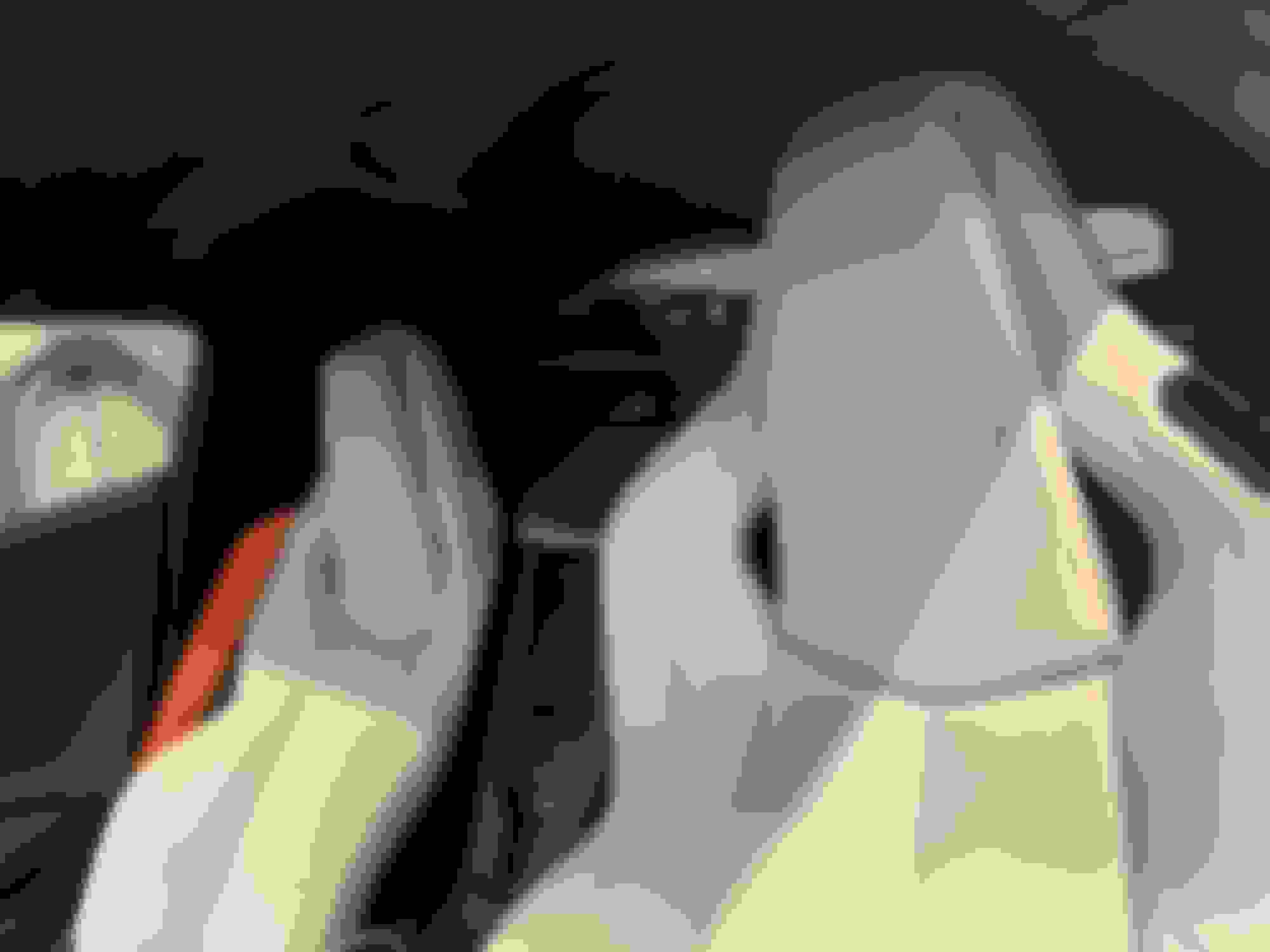 Orange-mask man sitting desk by window numeric overlay appearing ...