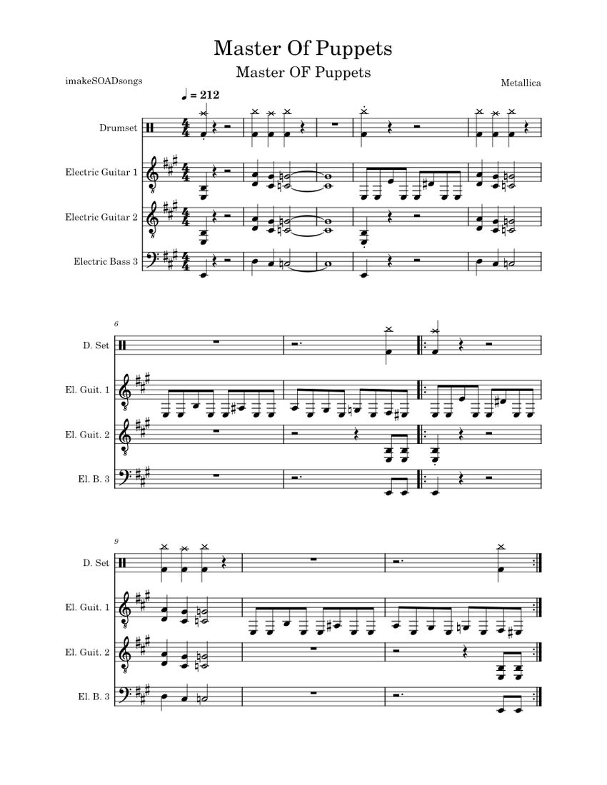 Master of puppets – Metallica Sheet music for Guitar, Bass guitar, Drum ...