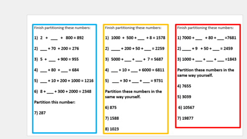 Addition by Partitioning Numbers Year 3 - TMK Education