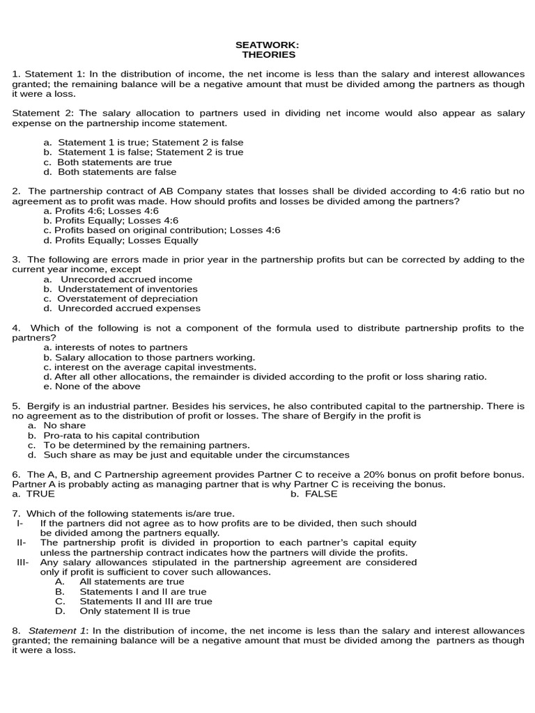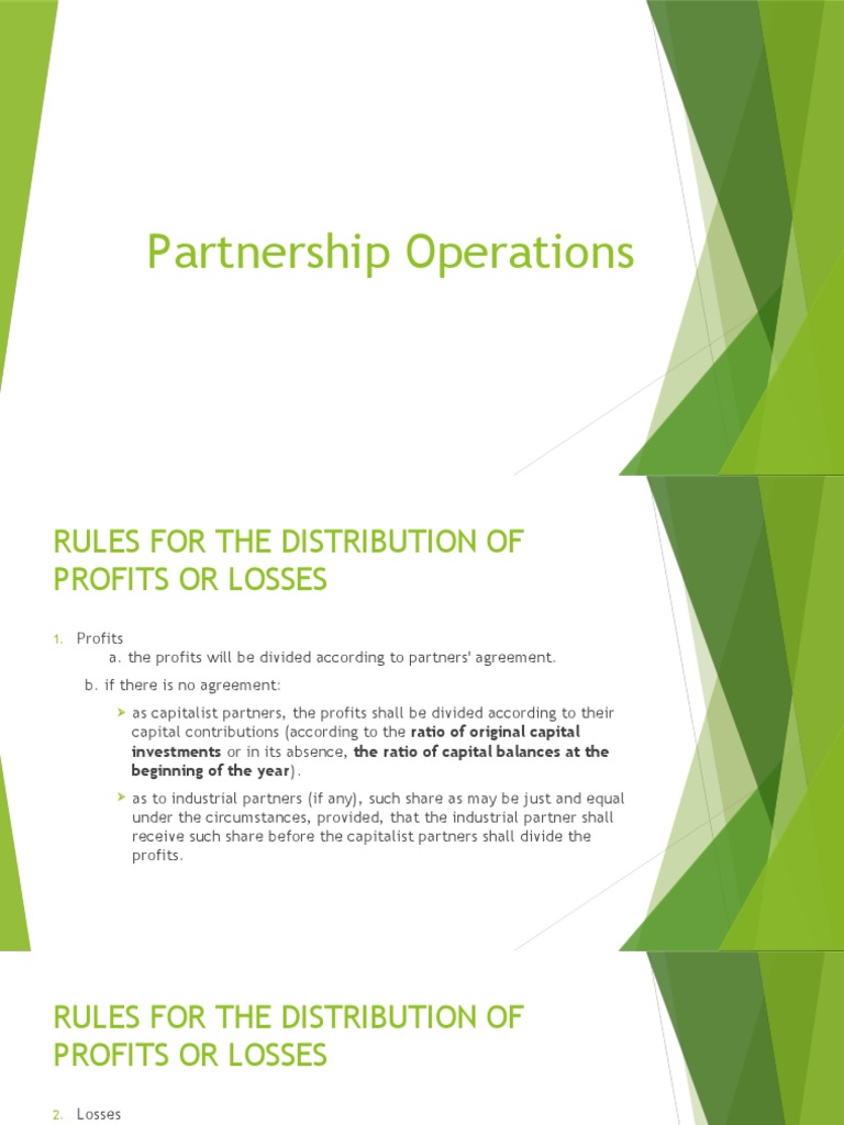 Partnership Operations - PARTNERSHIP OPERATIONS I. RULES OF PROFIT ...