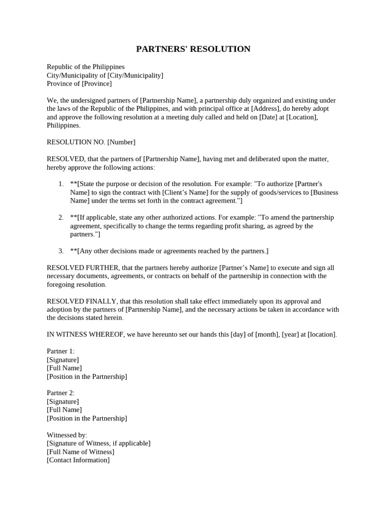 Partnership Resolution Format in Word - Fill Out and Sign Printable PDF ...