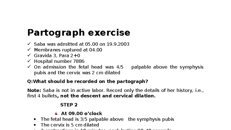 Partograph Exercise: Monitoring Saba's Labor Progress - Studocu
