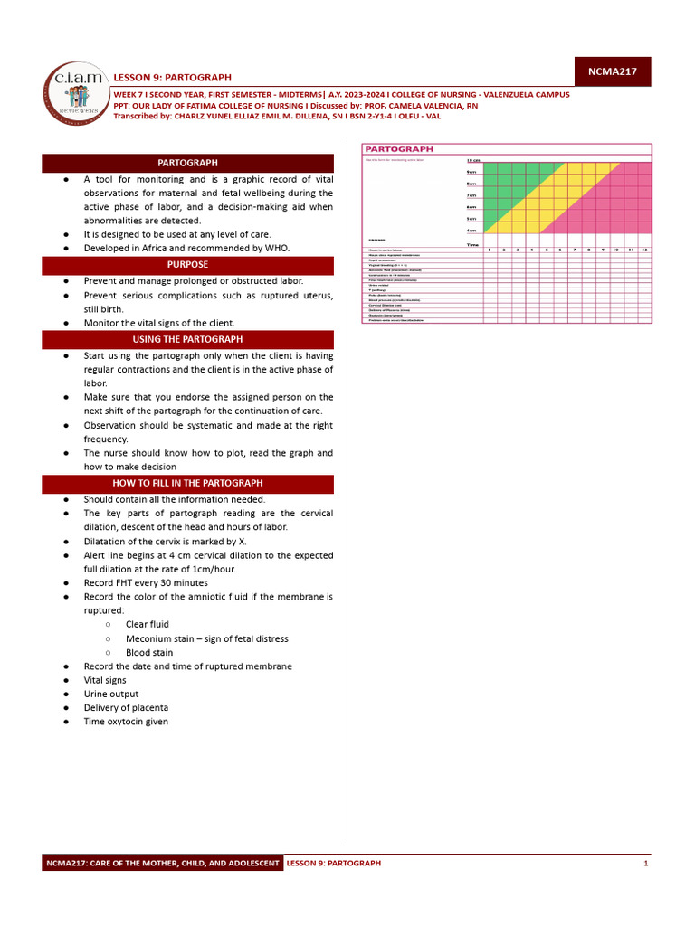 Partograph Monitoring in Active Labor - Lecture Notes - Studocu