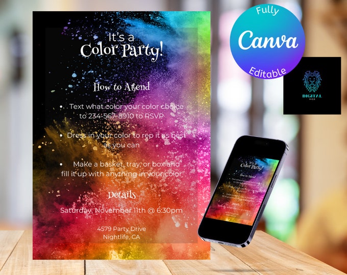 Editable Color Party Invitation, Rainbow Party, Adult Party Invite ...