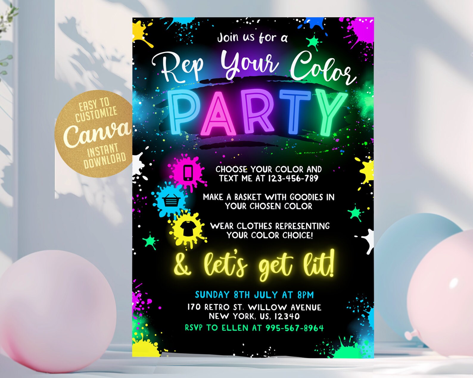 Editable Birthday Invitation, Rep Your Color Invitation, Color Theme ...