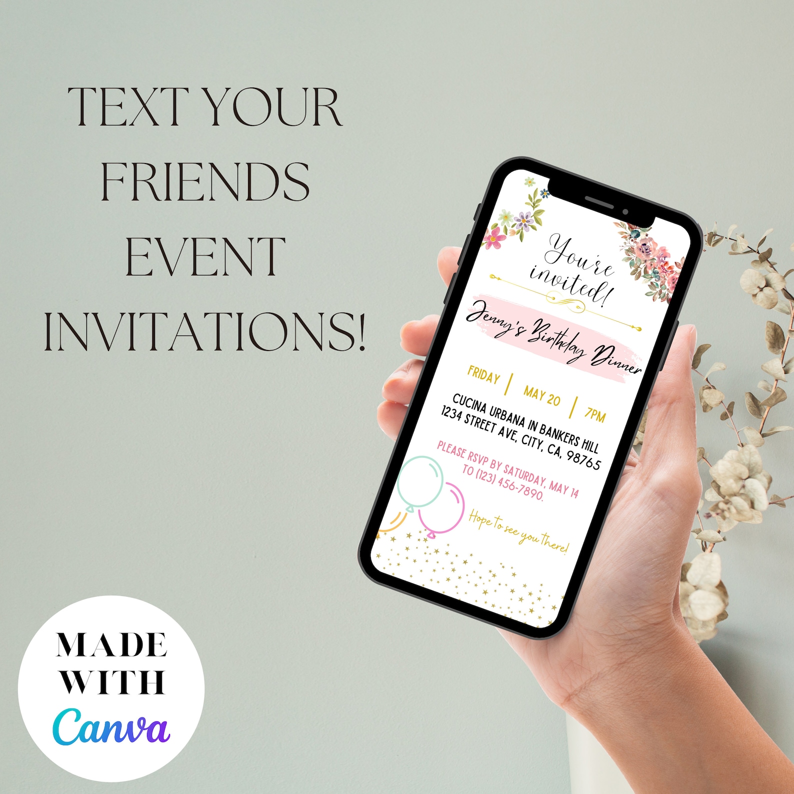Editable Birthday Dinner Invitation Template - Digital Text Message ...