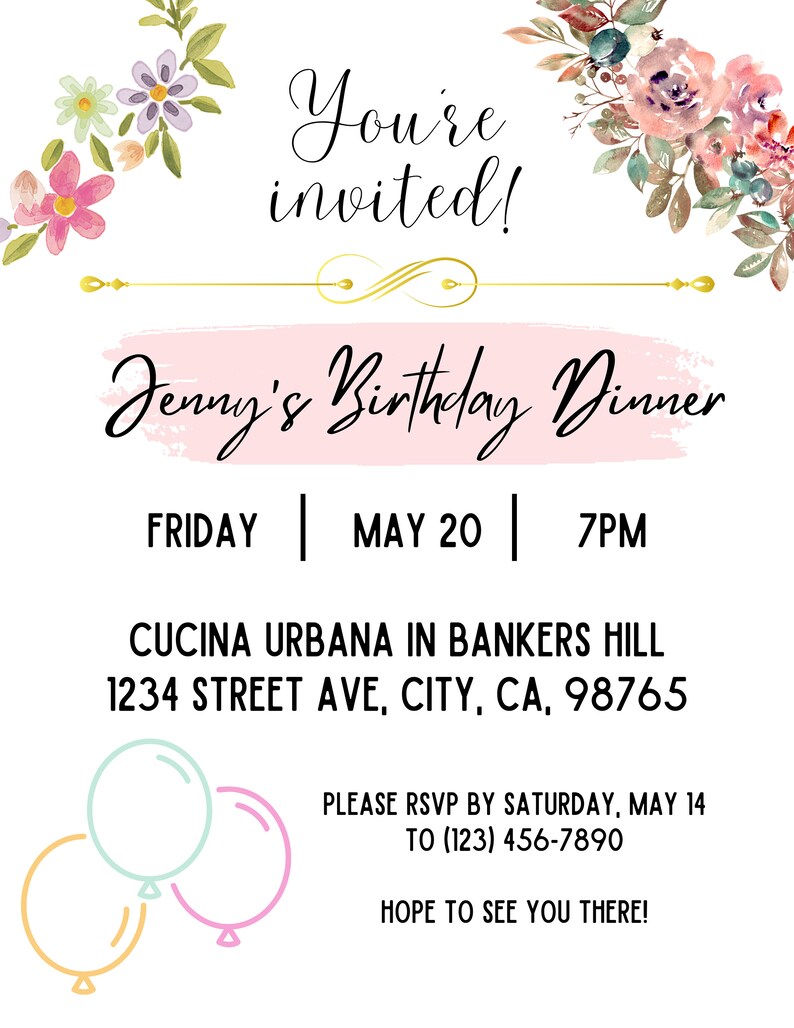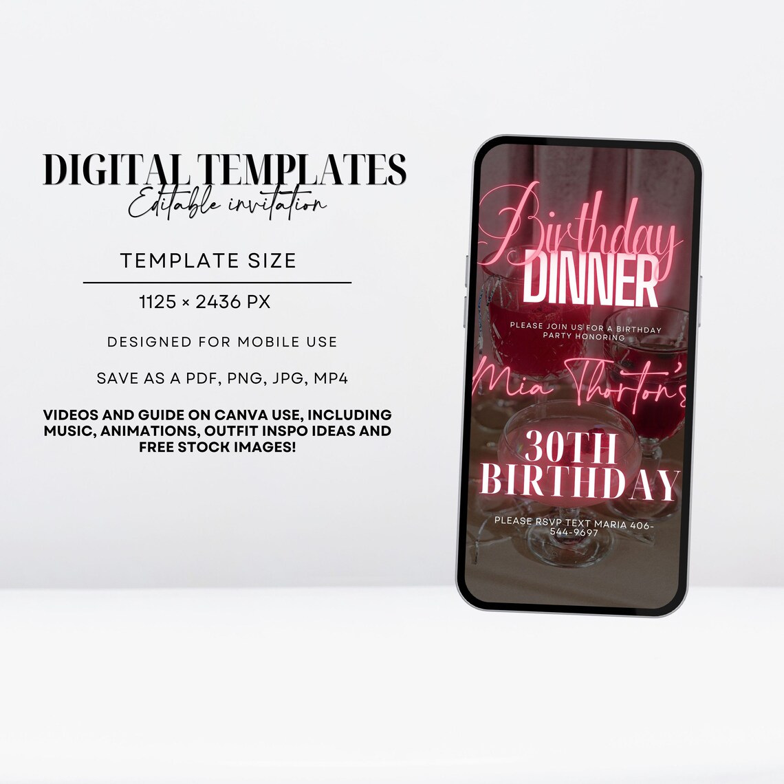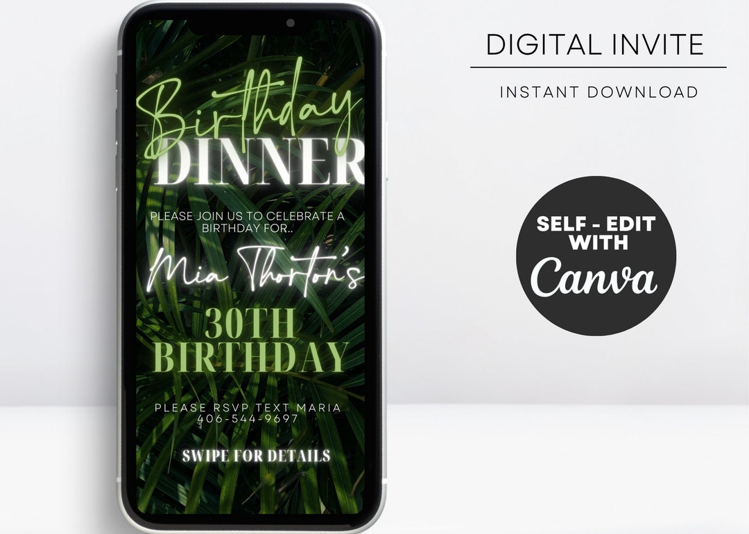 Digital Birthday Party Invite, Dinner Invitation, Birthday Dinner ...