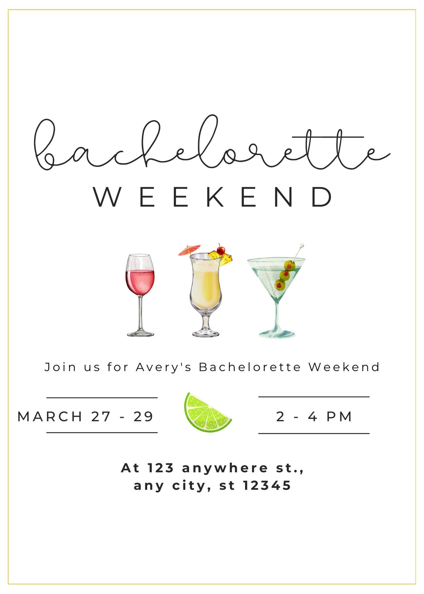 Editable Bachelorette Party Invitation, Text Invitation, Drinks, Pina ...